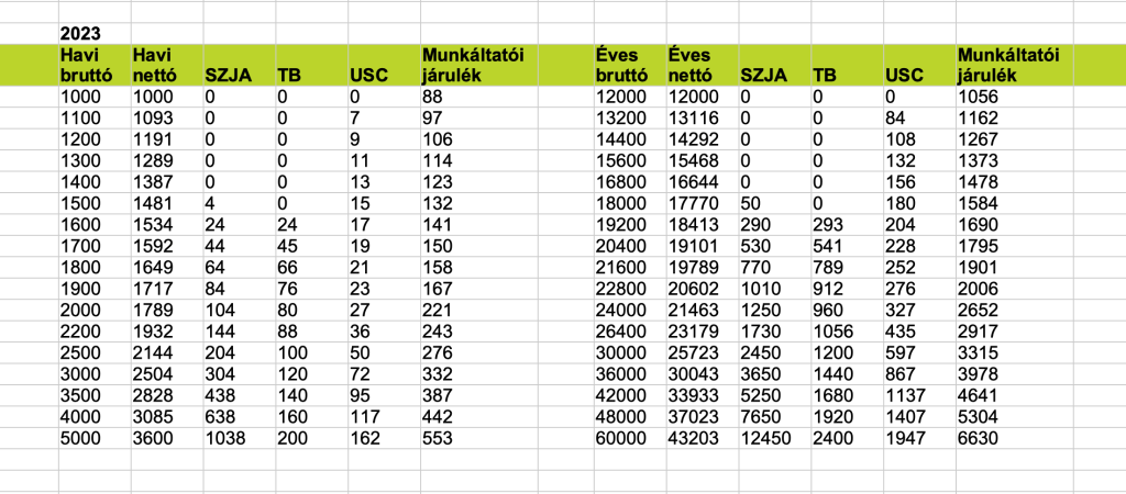 USC = ún. univerzális szociális díj (Pontosan az ami a neve, nem jár érte se ellátás, se nyugdíj, de fizetni kell és kész.)